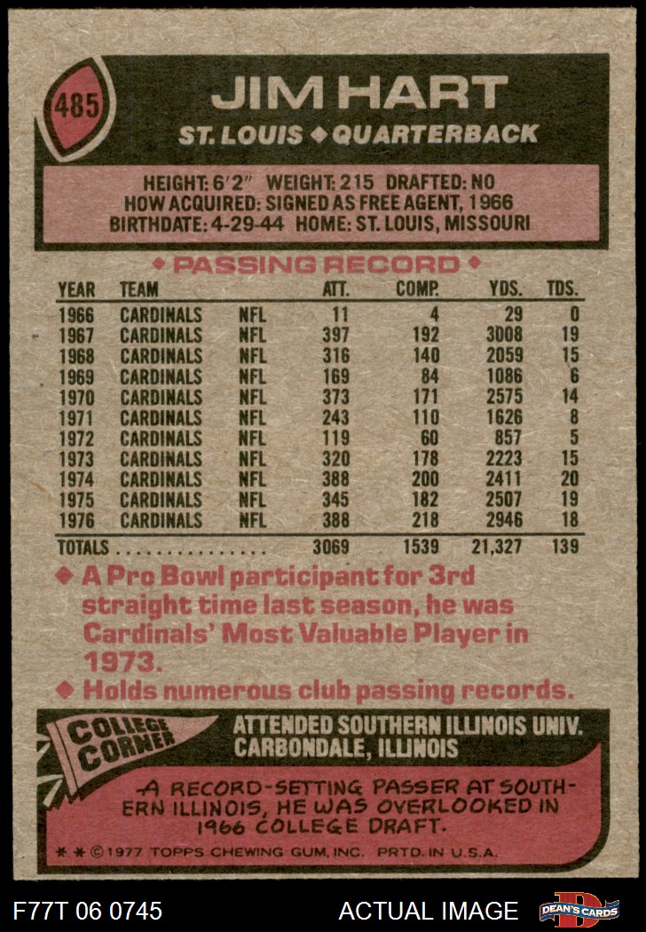 1977 Topps #485 Jim Hart 6 - EX/MT