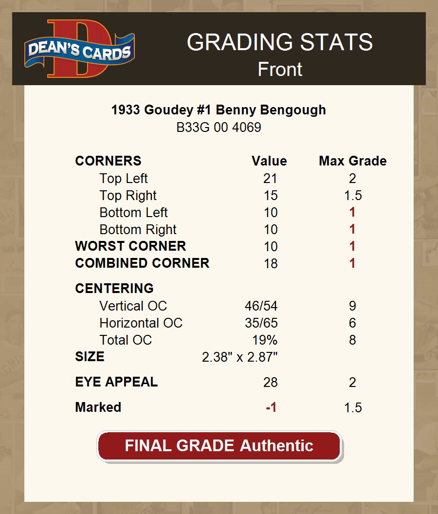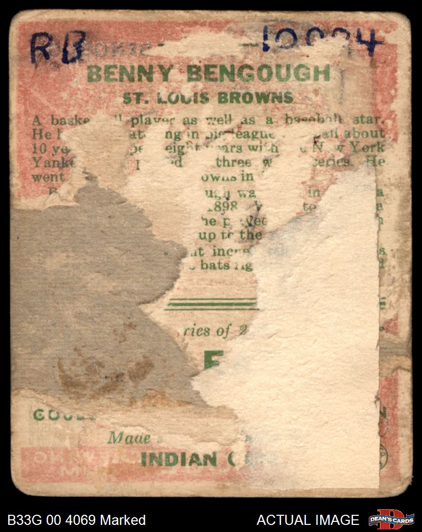 1933 Goudey #1 Benny Bengough AUTHENTIC