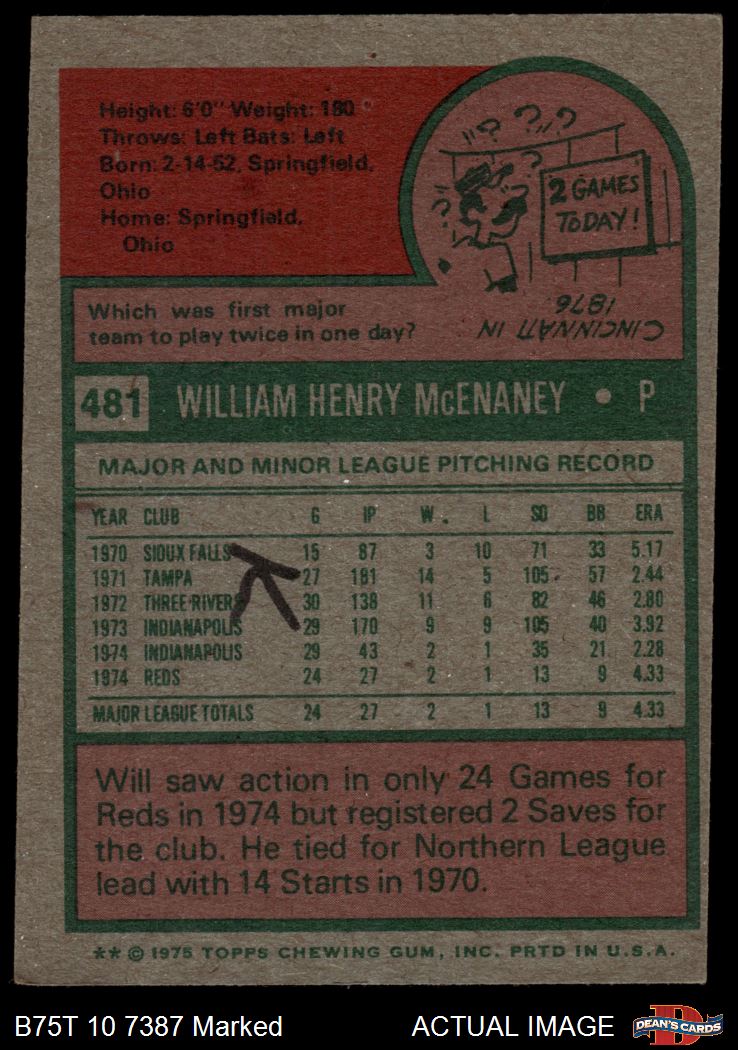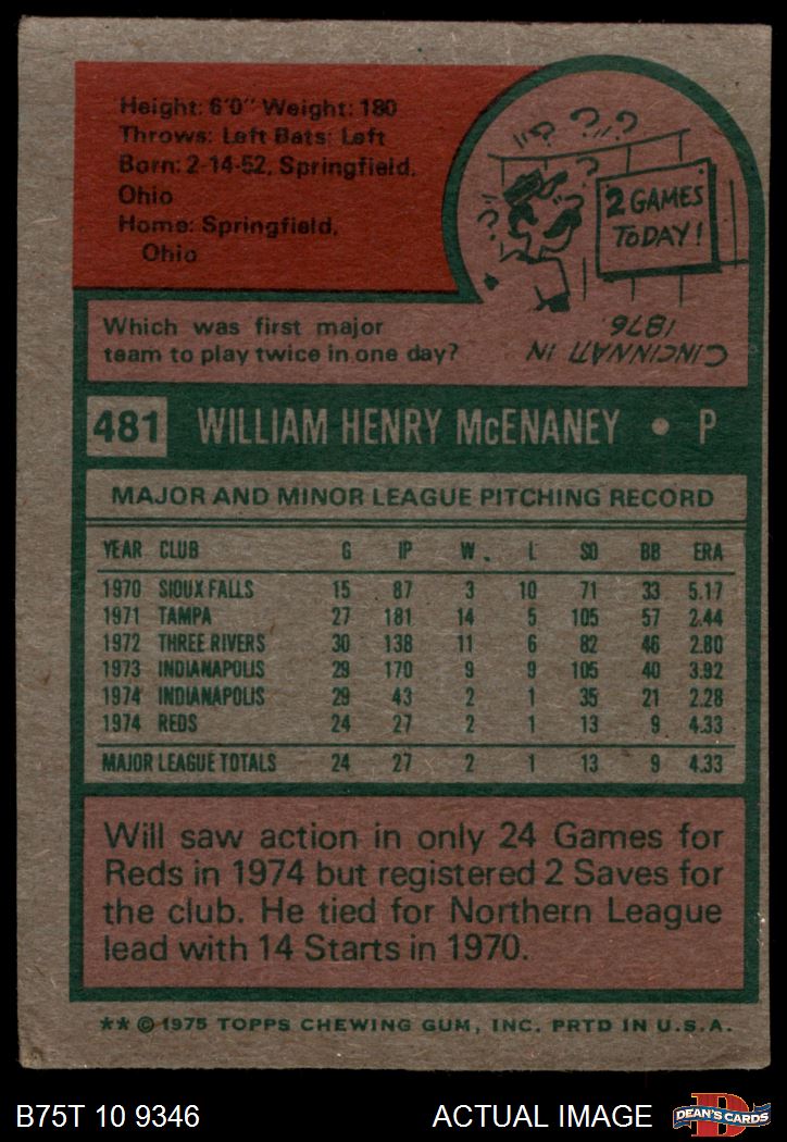 1975 Topps #481 Will McEnaney Front Thumbnail