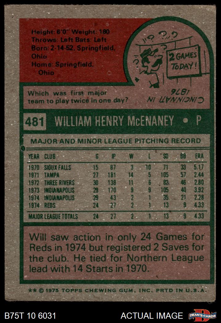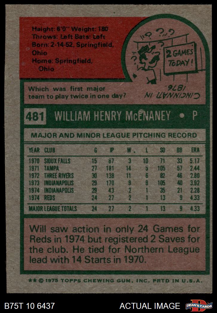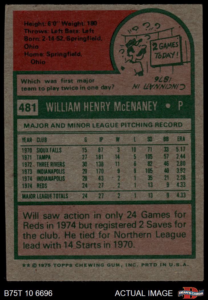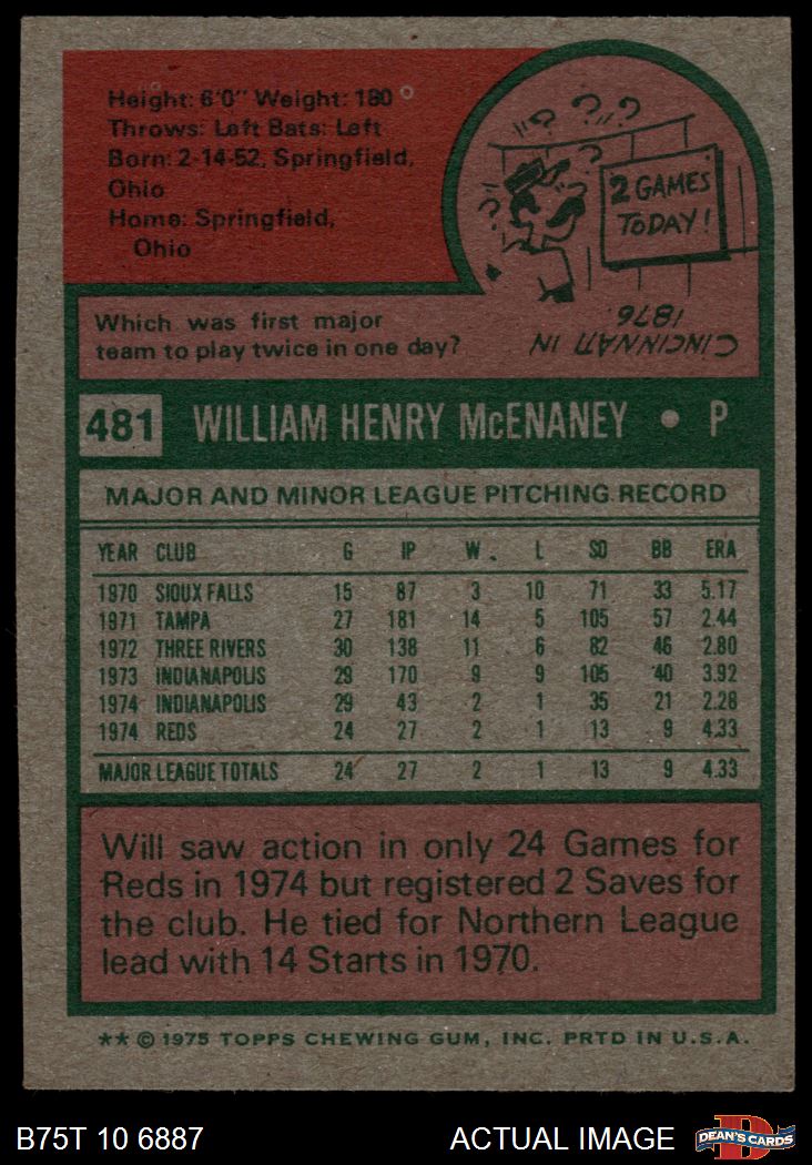 1975 Topps #481 Will McEnaney