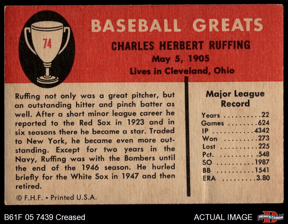 1961 Fleer #74 Red Ruffing Front Thumbnail