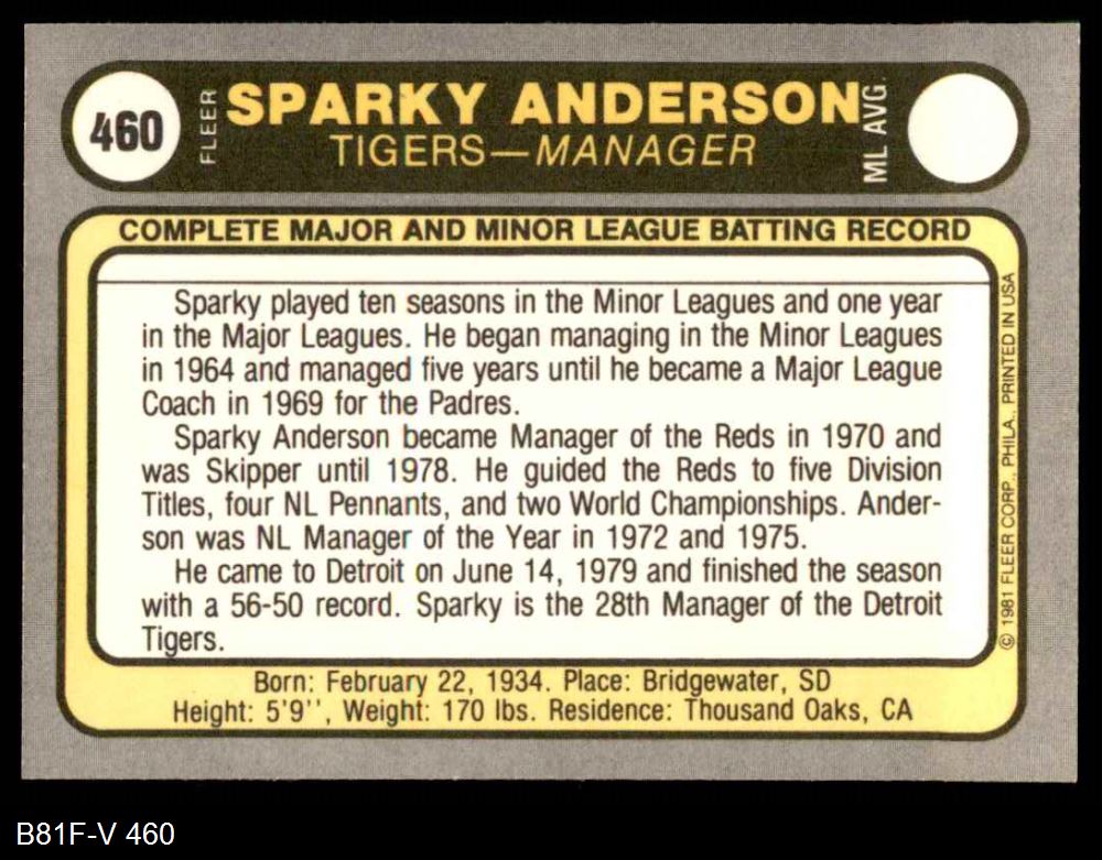 1981 Fleer #460 Sparky Anderson