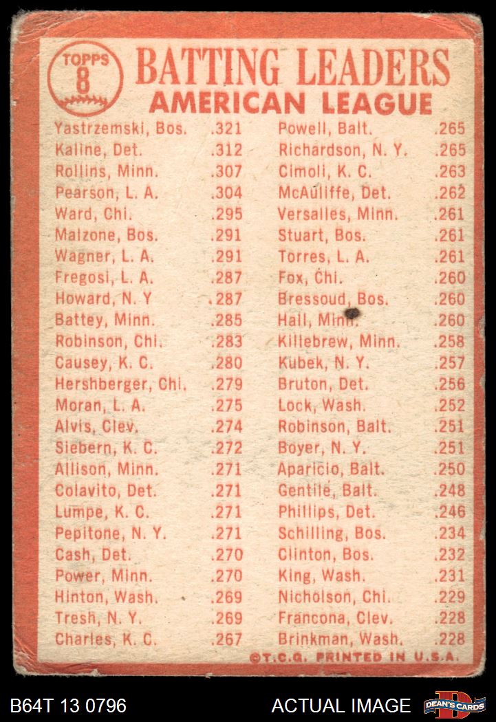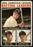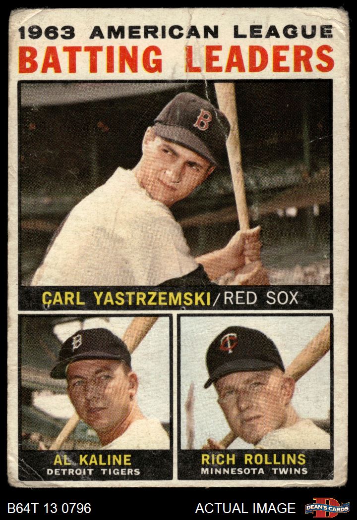 1964 Topps #8 - Carl Yastrzemski / Al Kaline / Rich Rollins AL Batting Leaders AUTHENTIC