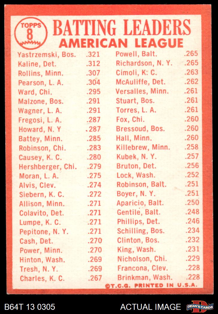 1964 Topps #8 - Carl Yastrzemski / Al Kaline / Rich Rollins AL Batting Leaders 5 - EX