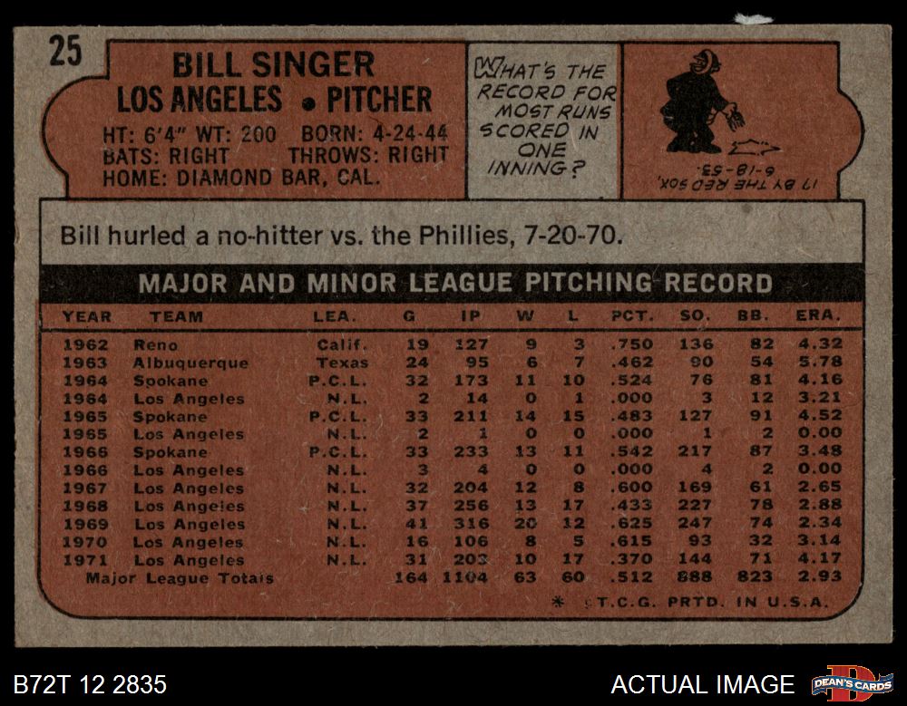 1972 Topps #25 Bill Singer 2.5 - GD+