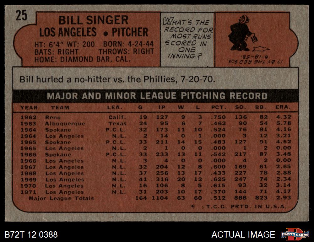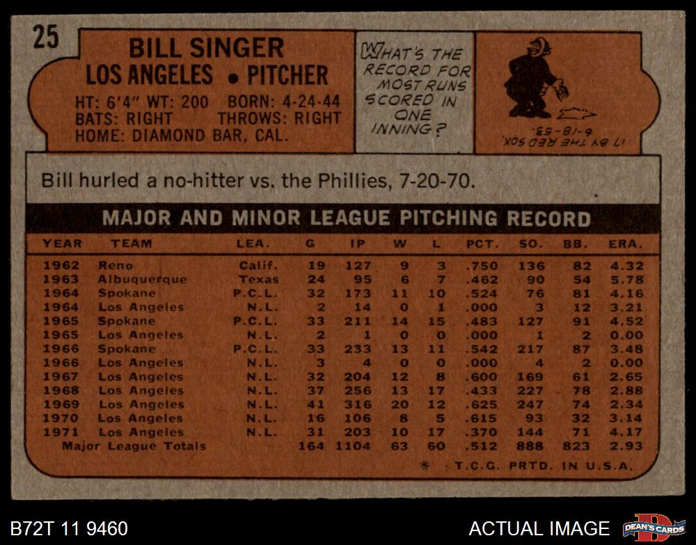 1972 Topps #25 Bill Singer 4 - VG/EX