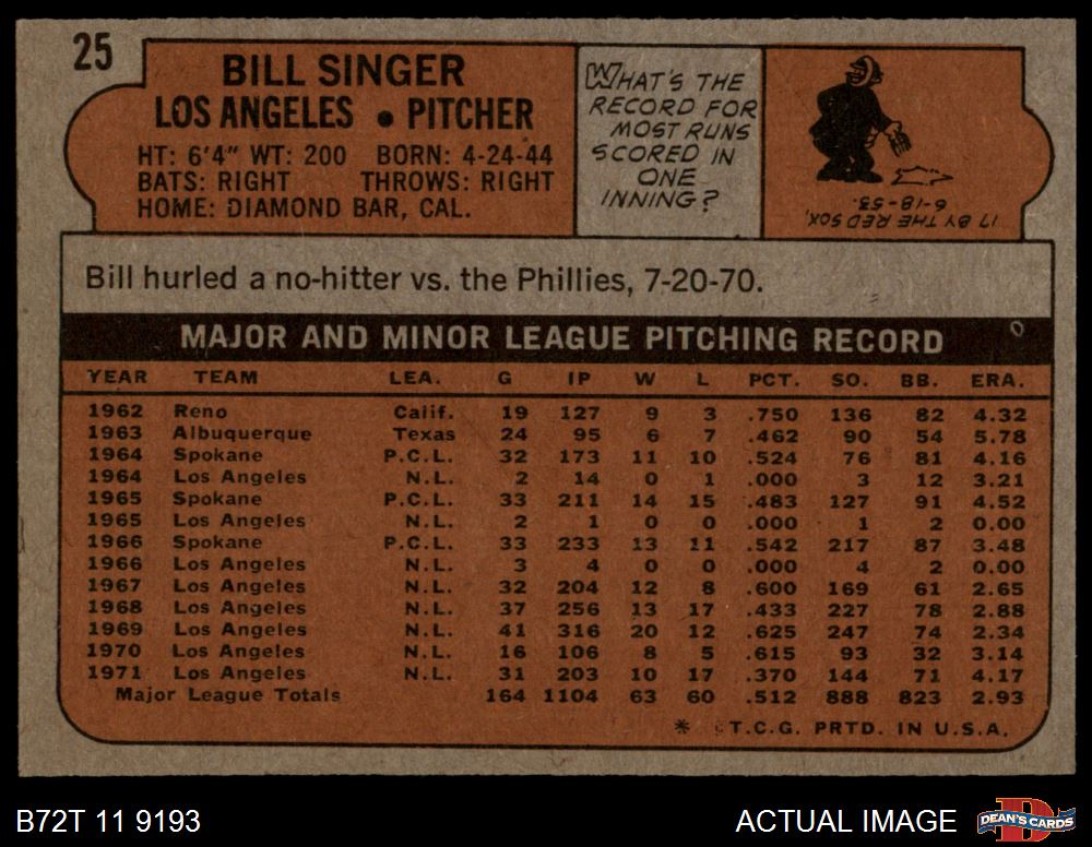 1972 Topps #25 Bill Singer 6 - EX/MT