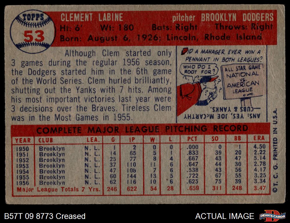 1957 Topps #53 Clem Labine