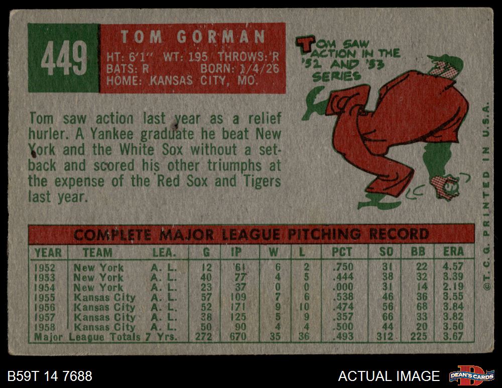 1959 Topps #449 Tom Gorman 3 - VG
