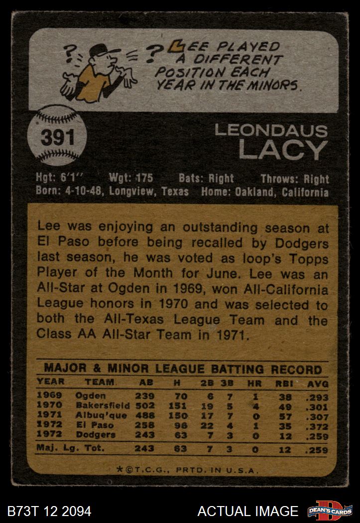 1973 Topps #391 Lee Lacy Front Thumbnail