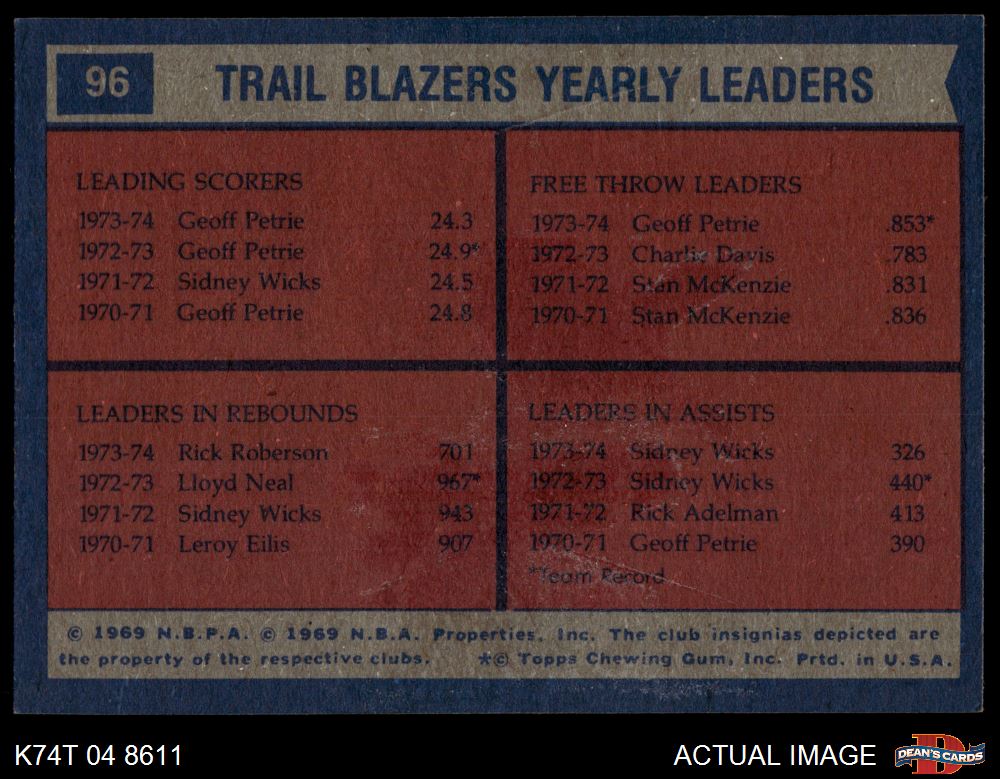 1974 Topps #96 Geoff Petrie / Sidney Wicks / Rick Roberson 4 - VG/EX