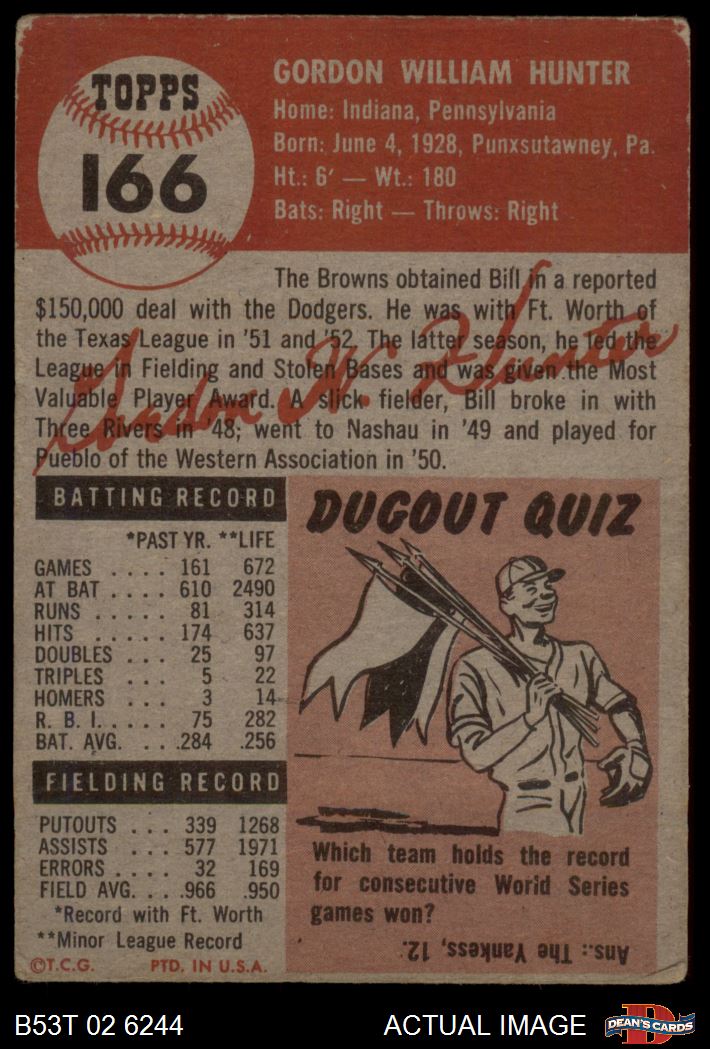 1953 Topps #166 Bill Hunter