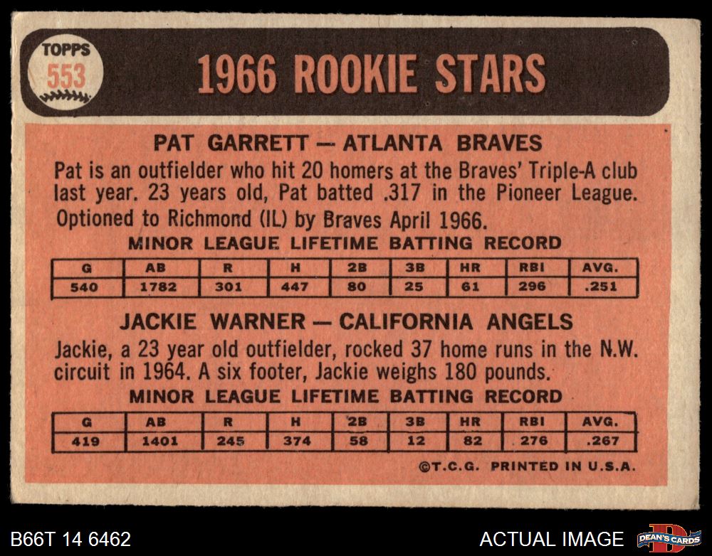 1966 Topps #553 - Pat Garrett / Jackie Warner Rookies 3 - VG