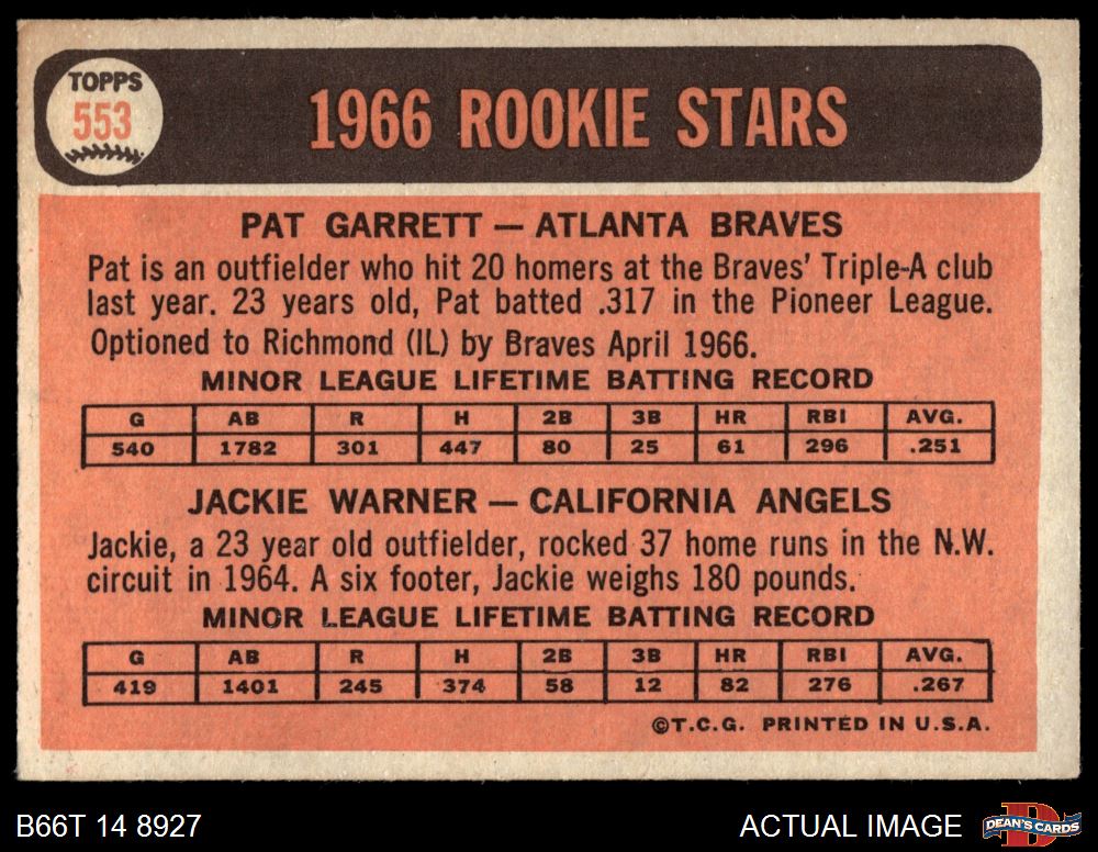 1966 Topps #553 - Pat Garrett / Jackie Warner Rookies 3.5 - VG+