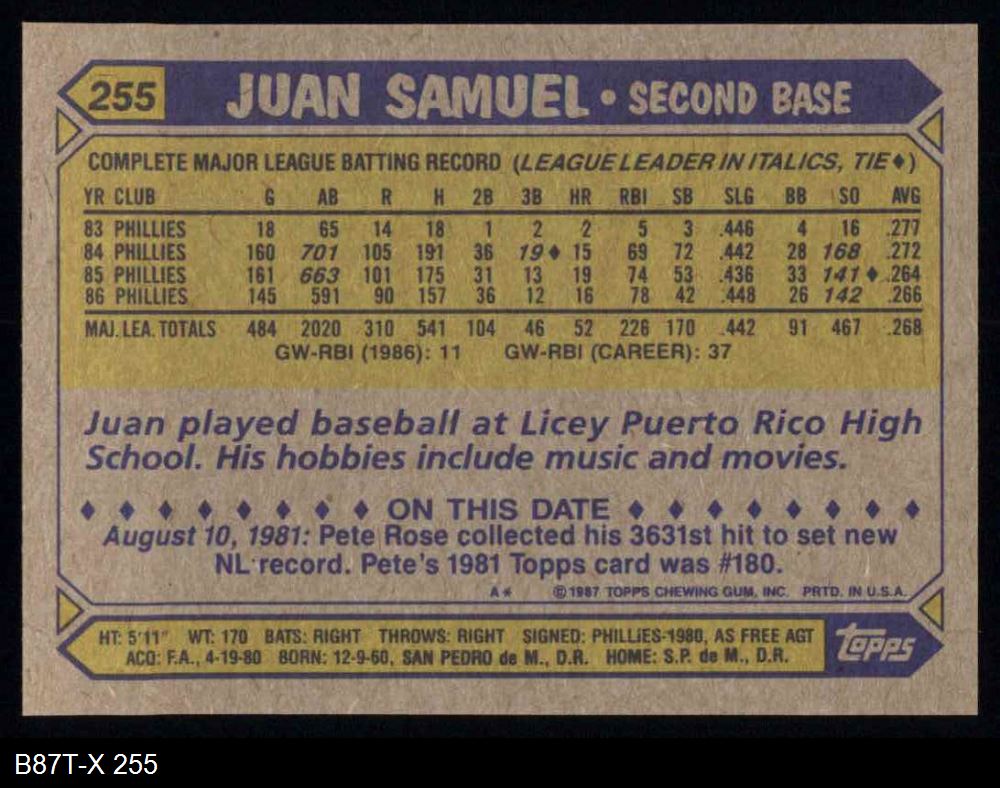 1987 Topps #255 Juan Samuel