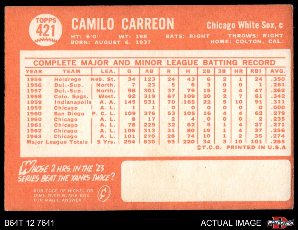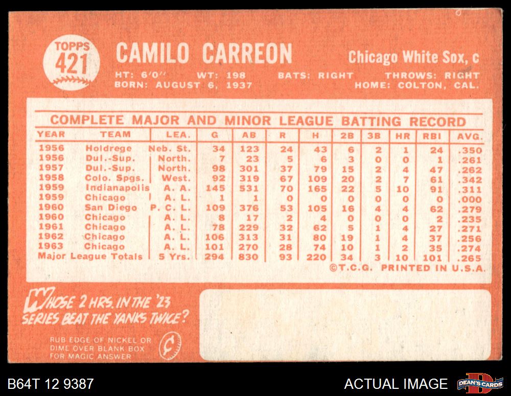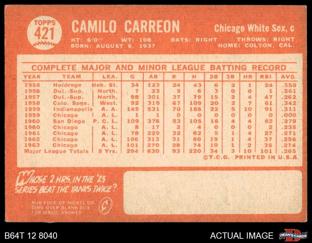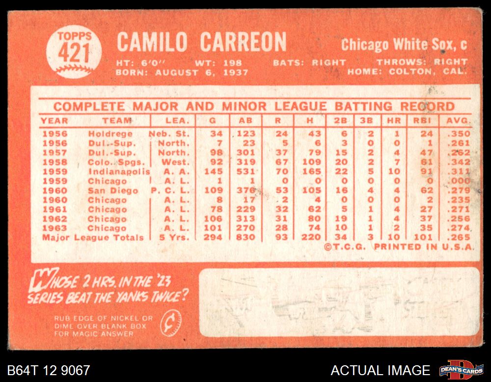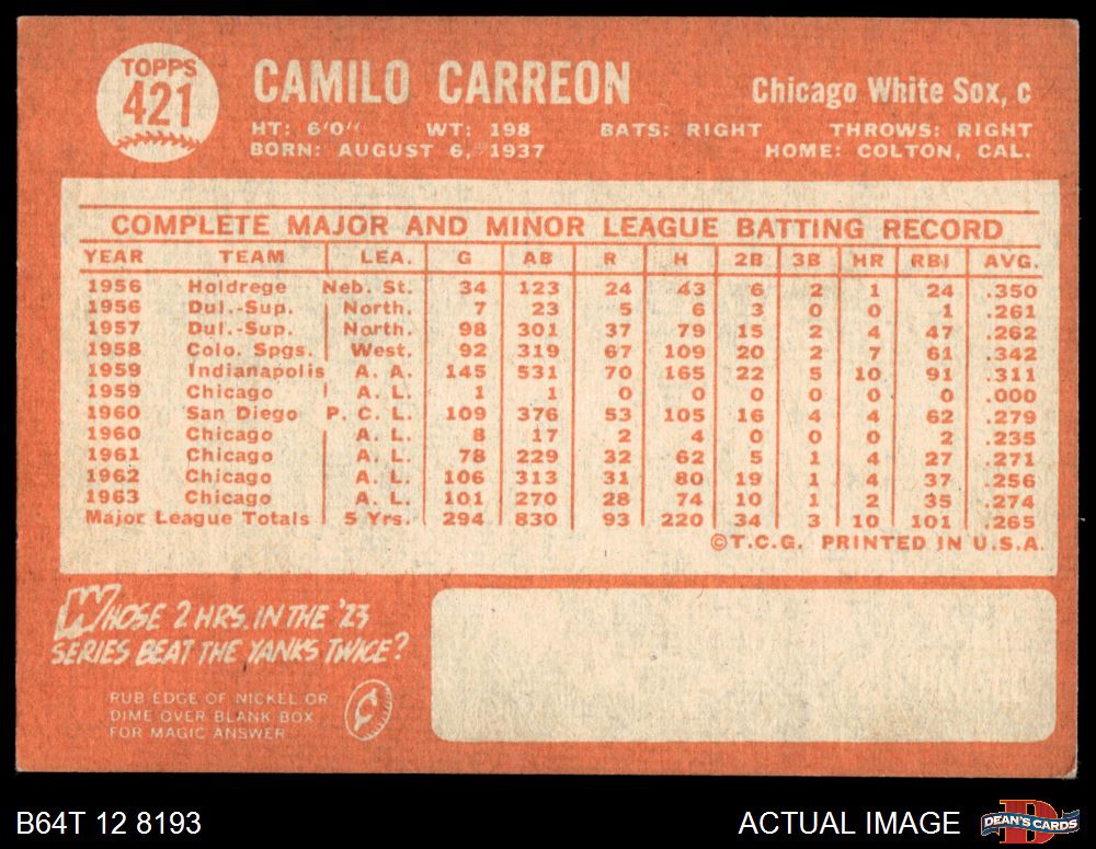 1964 Topps #421 Camilo Carreon