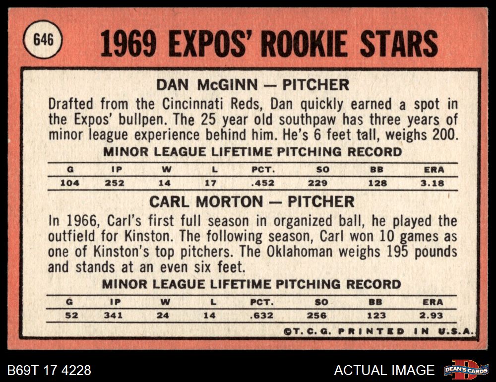 1969 Topps #646 - Carl Morton / Dan McGinn Expos Rookies 5.5 - EX+
