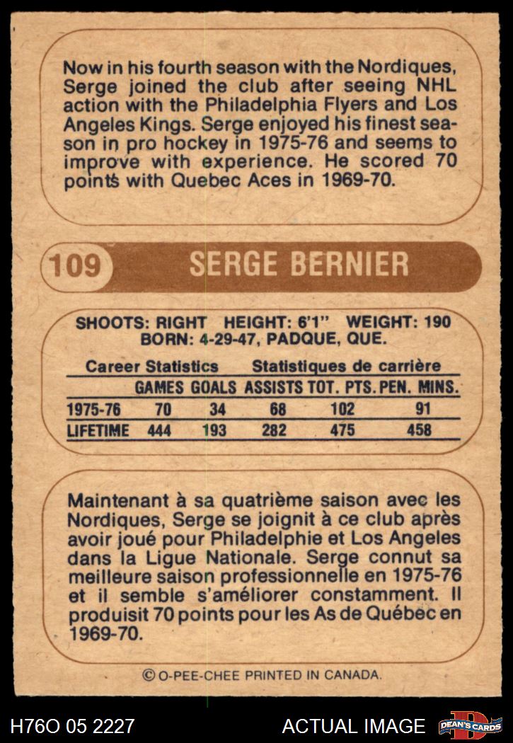 1976 O-Pee-Chee WHA #109 Serge Bernier 7 - NM