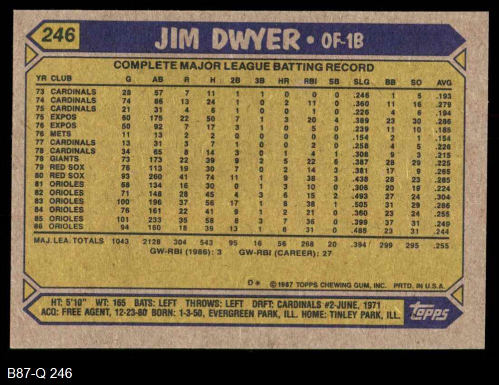 1987 Topps #246 Jim Dwyer 8 - NM/MT