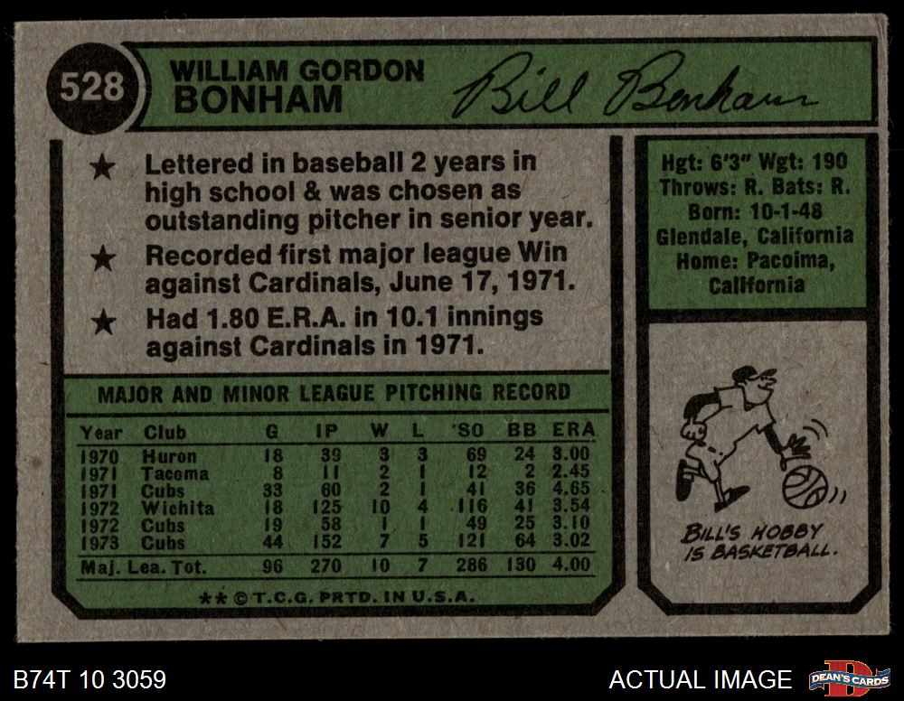 1974 Topps #528 Bill Bonham