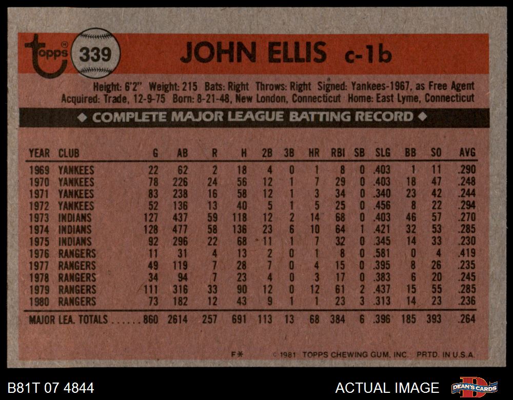1981 Topps #339 John Ellis