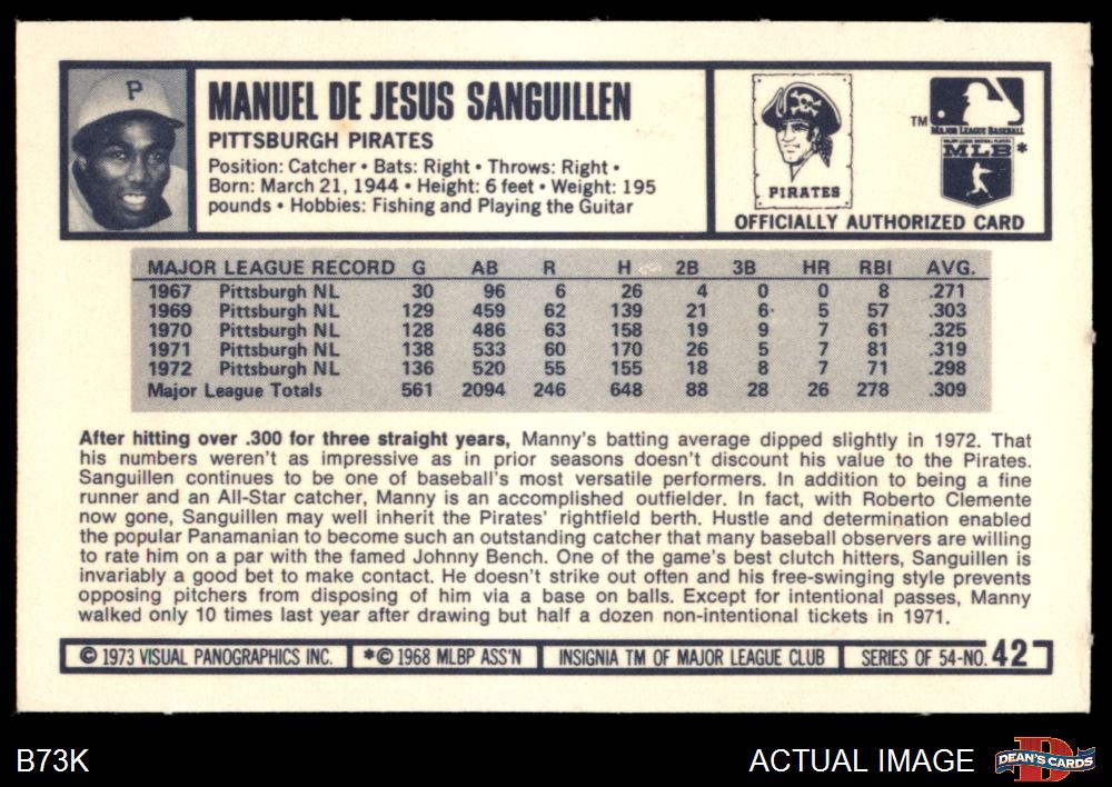 1973 Kellogg's #42 Manny Sanguillen 7 - NM