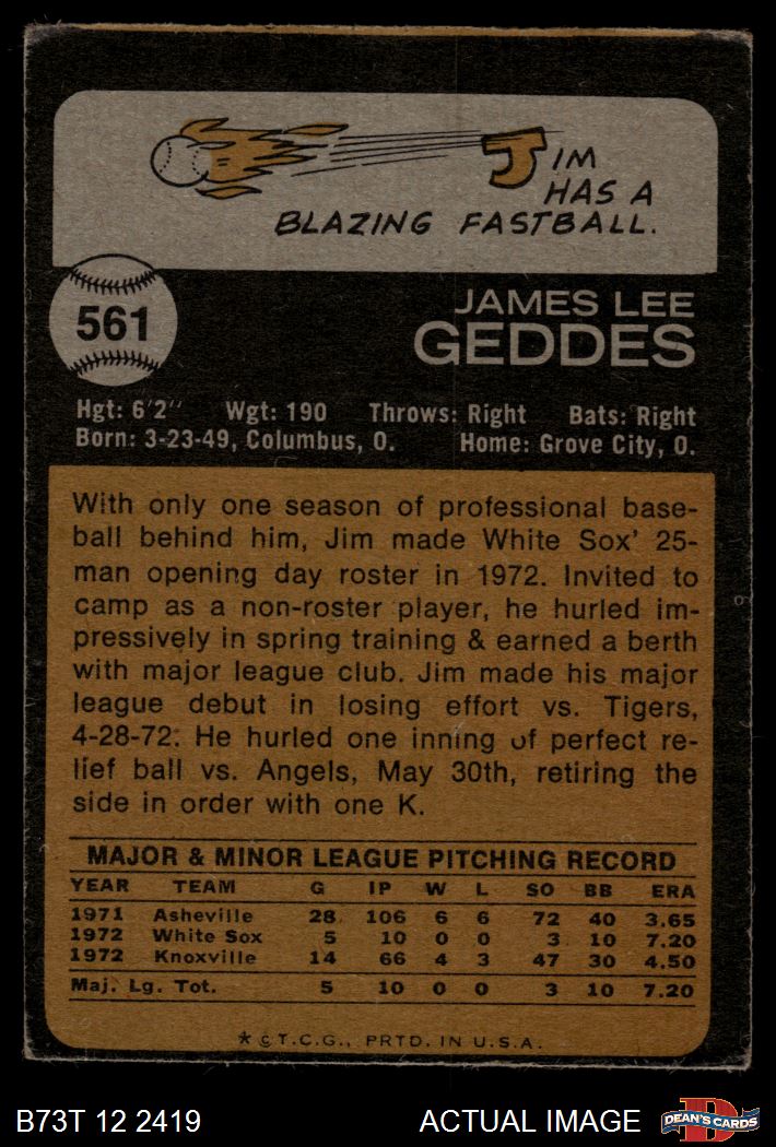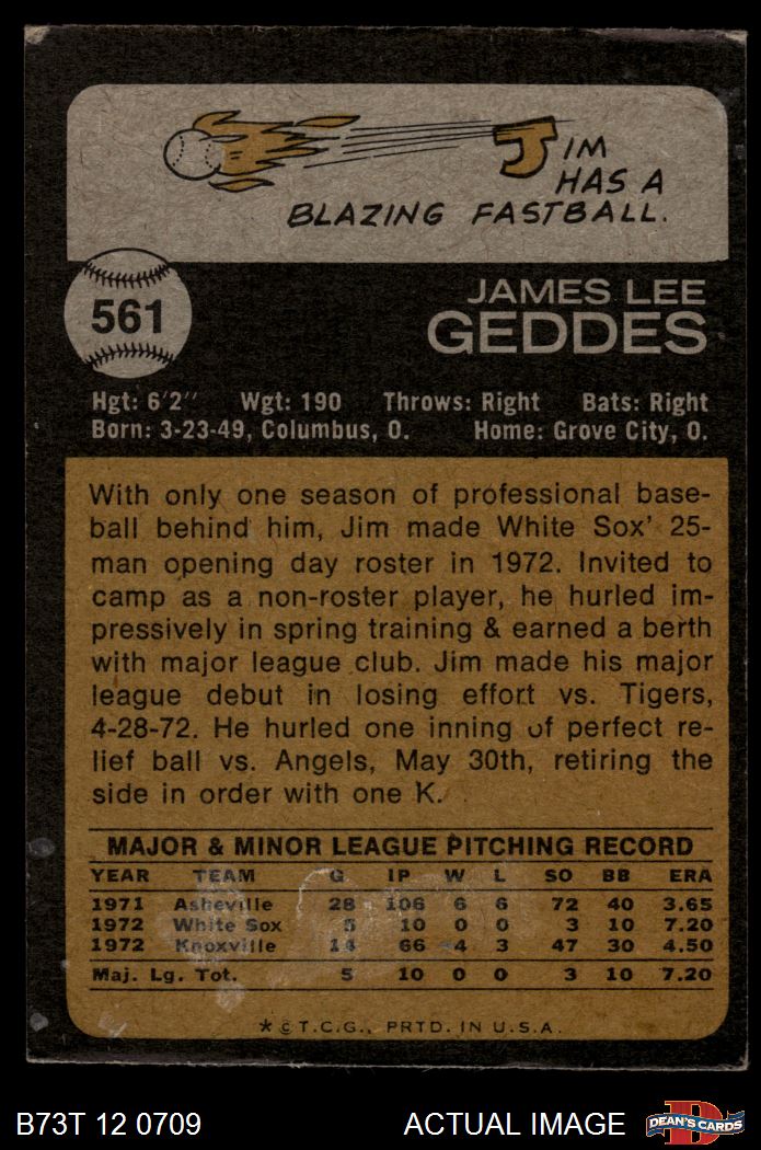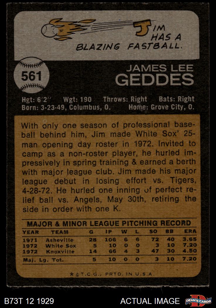 1973 Topps #561 Jim Geddes