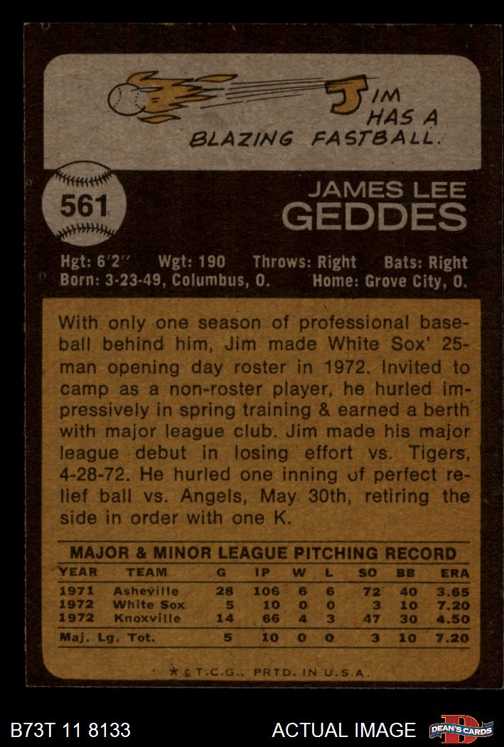 1973 Topps #561 Jim Geddes 6 - EX/MT