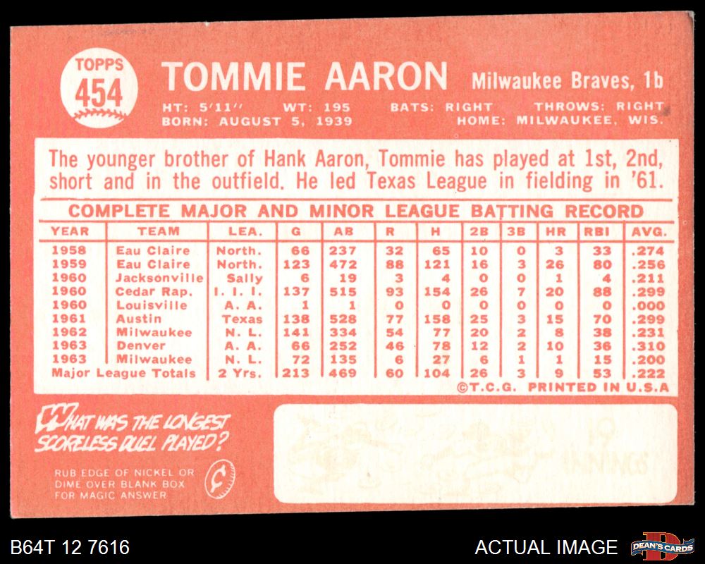 1964 Topps #454 Tommie Aaron 4 - VG/EX