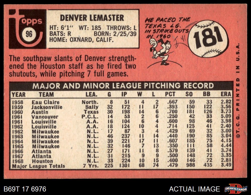 1969 Topps #96 Denver Lemaster