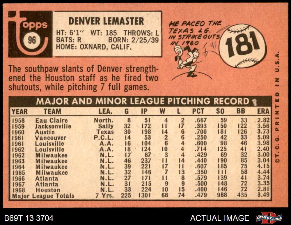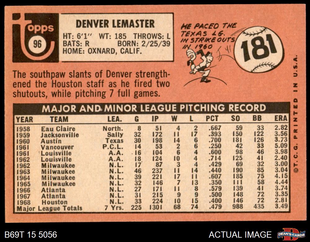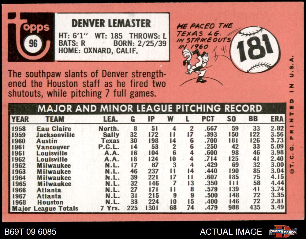 1969 Topps #96 Denver Lemaster 6.5 - EX/MT+