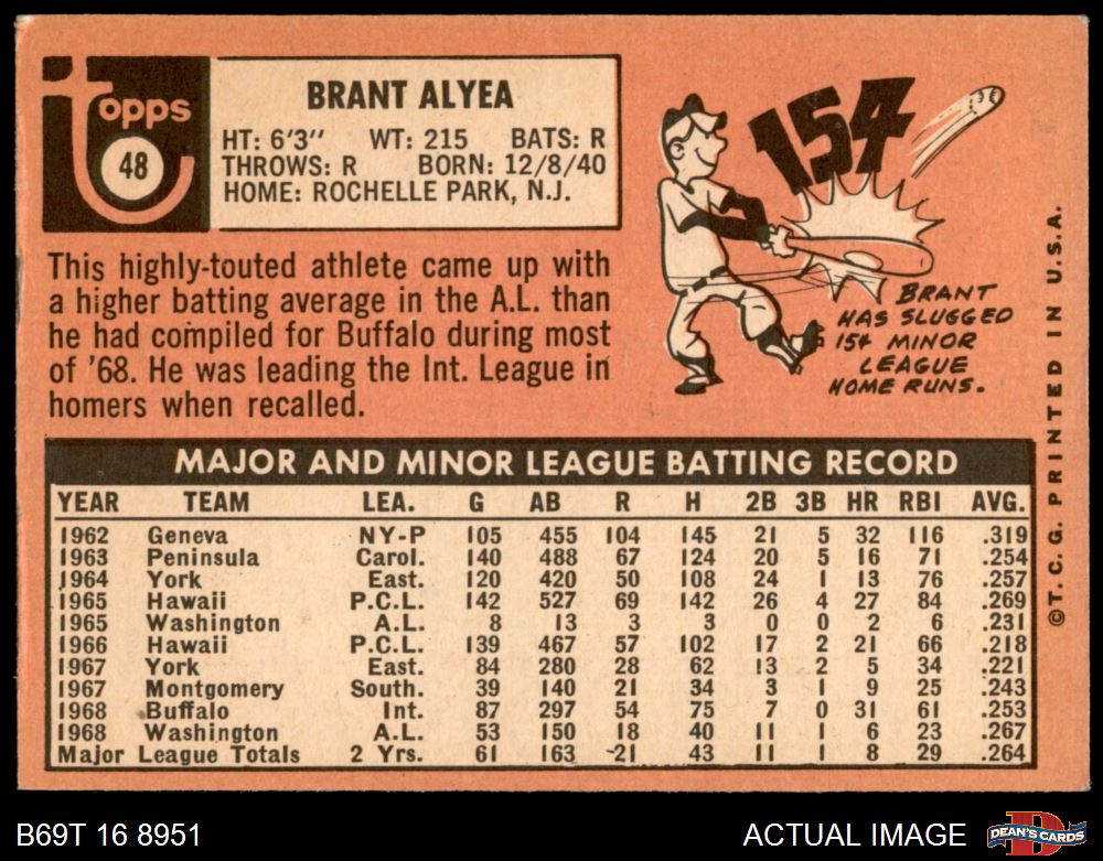 1969 Topps #48 Brant Alyea 5 - EX