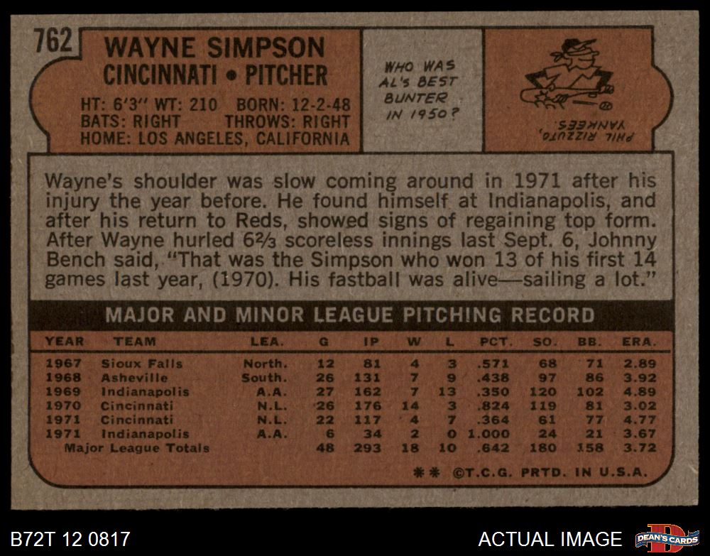 1972 Topps #762 Wayne Simpson 5 - EX