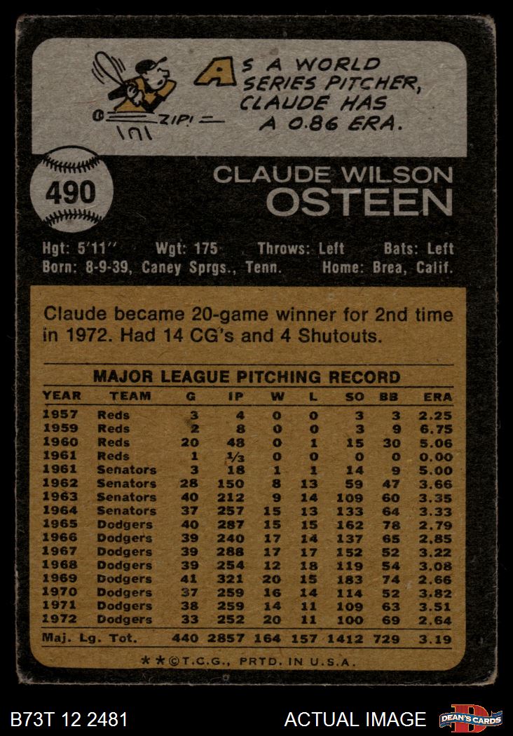 1973 Topps #490 Claude Osteen 1 - POOR