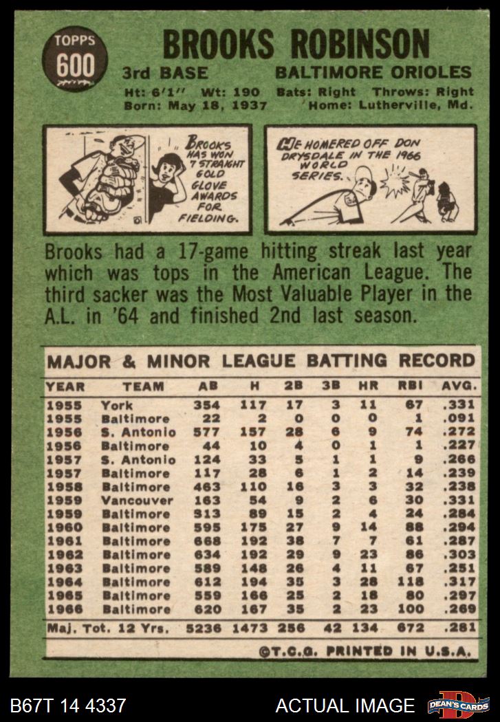 1967 Topps #600 Brooks Robinson 6 - EX/MT