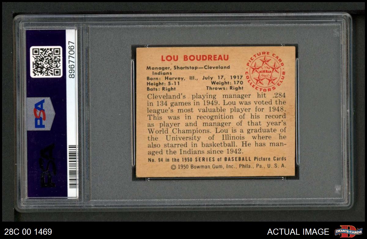1950 Bowman #94 Lou Boudreau PSA 6 - EX/MT