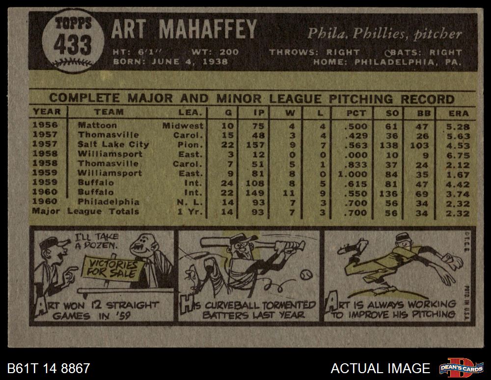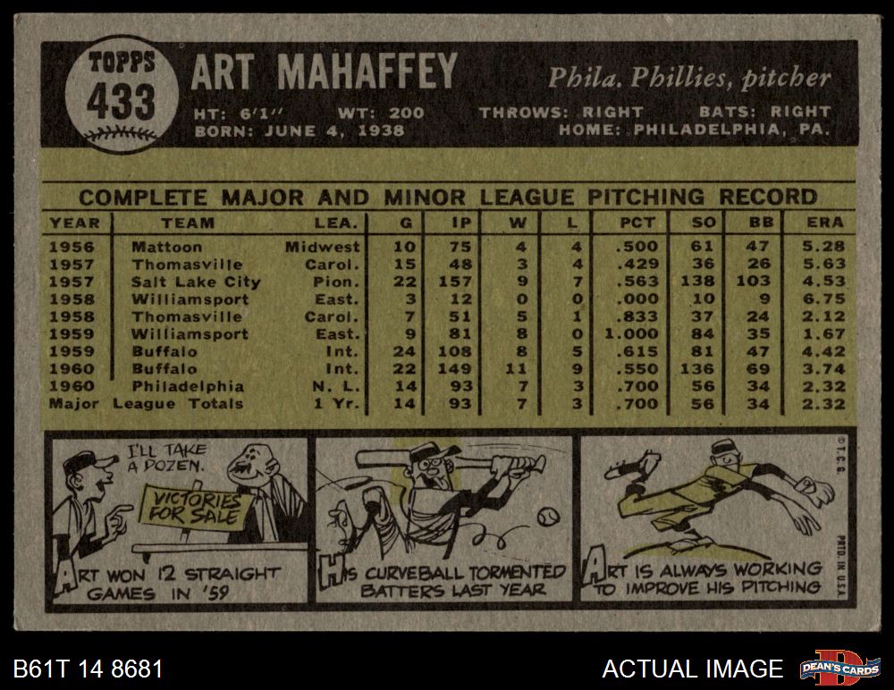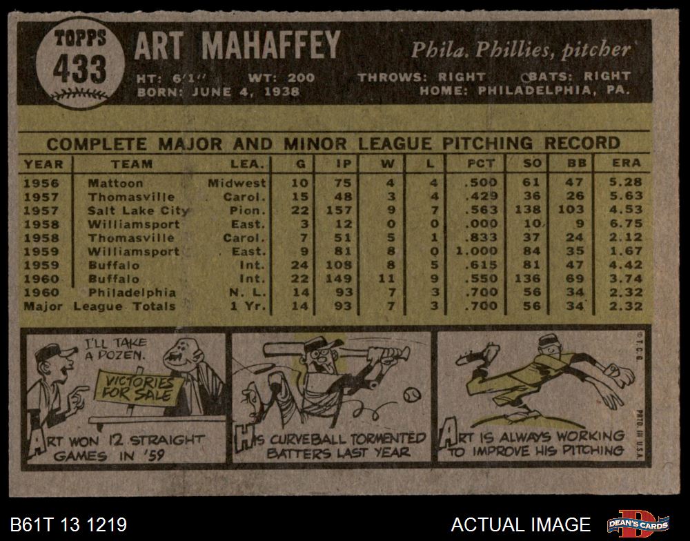 1961 Topps #433 Art Mahaffey 4 - VG/EX