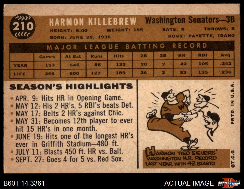 1960 Topps #210 Harmon Killebrew 4 - VG/EX