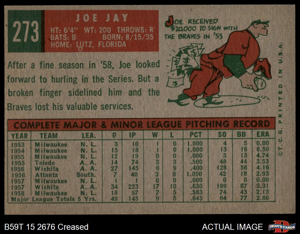 1959 Topps #273 Joey Jay 3 - VG