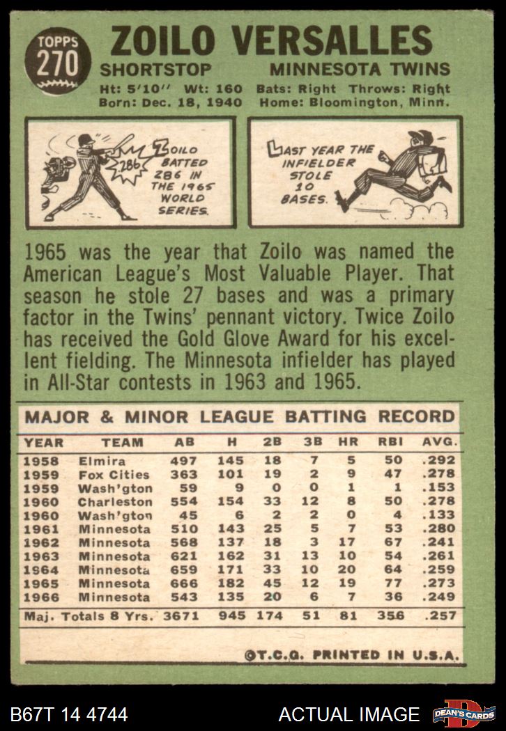 1967 Topps #270 Zoilo Versalles 4 - VG/EX