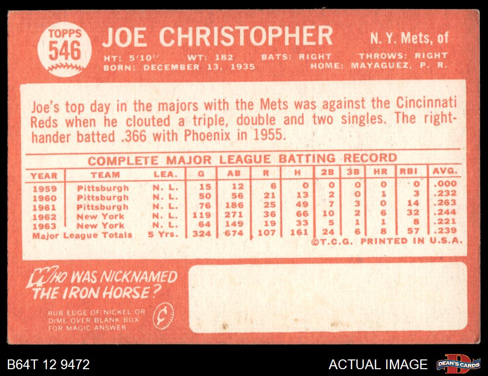 1964 Topps #546 Joe Christopher Front Thumbnail