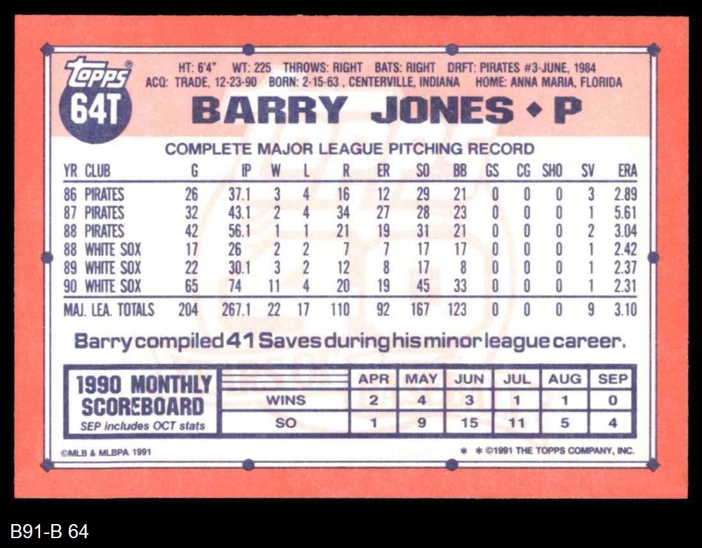 1991 Topps Traded #64 T Barry Jones