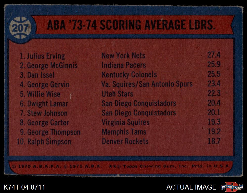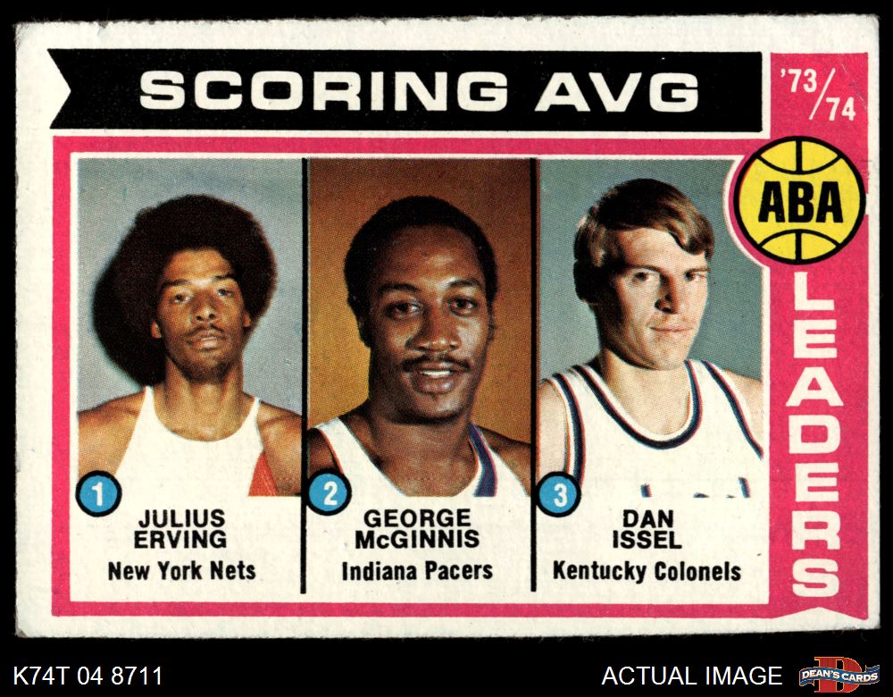 1974 Topps #207 - Julius Erving / Dan Issel / George McGinnis ABA Scoring Average Leaders 2 - GOOD