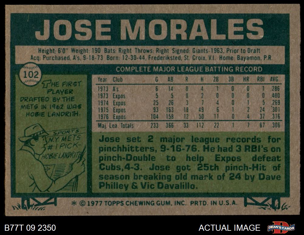 1977 Topps #102 Jose Morales 4 - VG/EX
