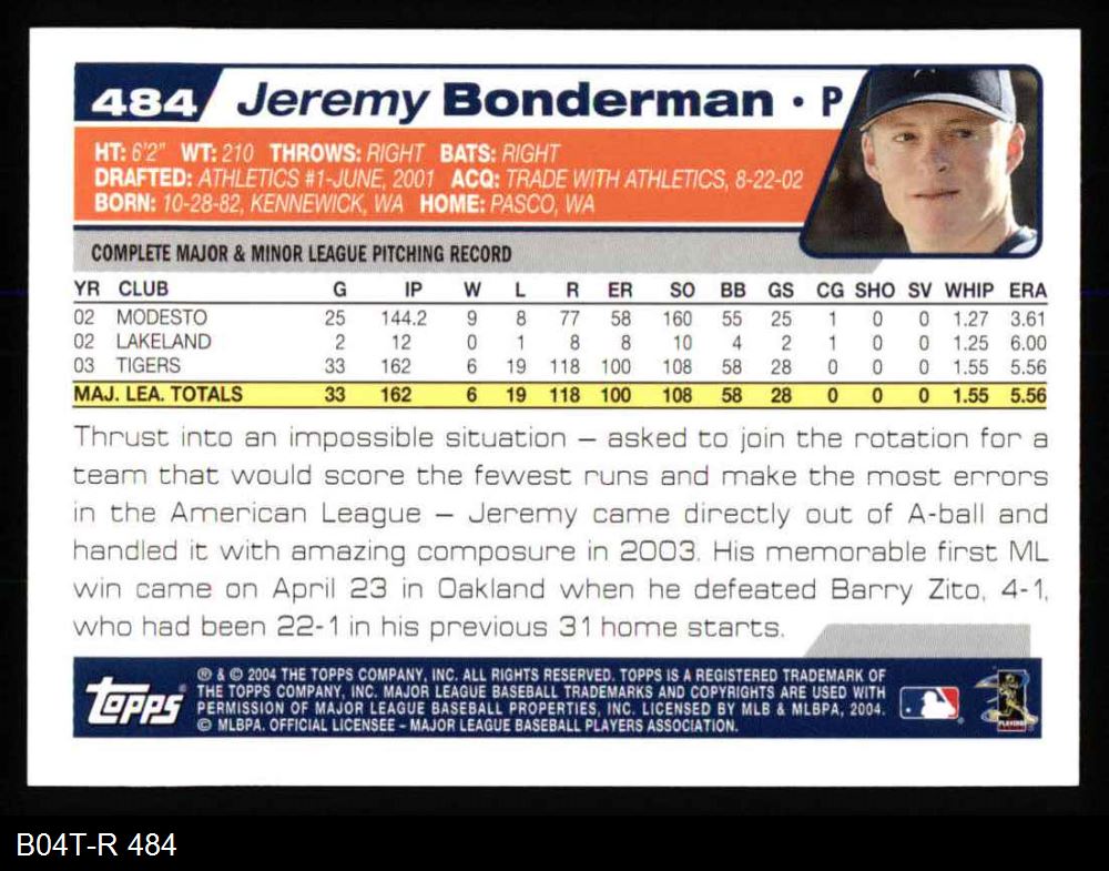 2004 Topps #484 Jeremy Bonderman 8 - NM/MT