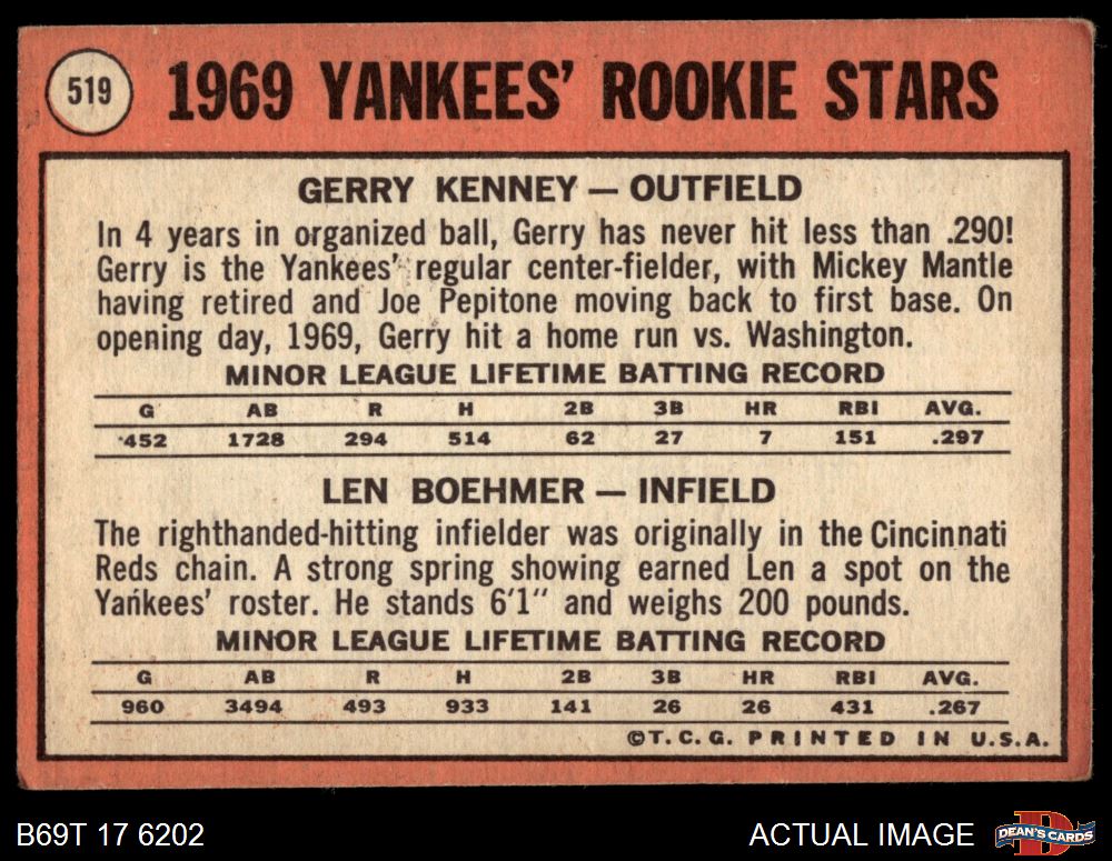 1969 Topps #519 - Len Boehmer / Gerry Kenney Yankees Rookies 1.5 - FAIR