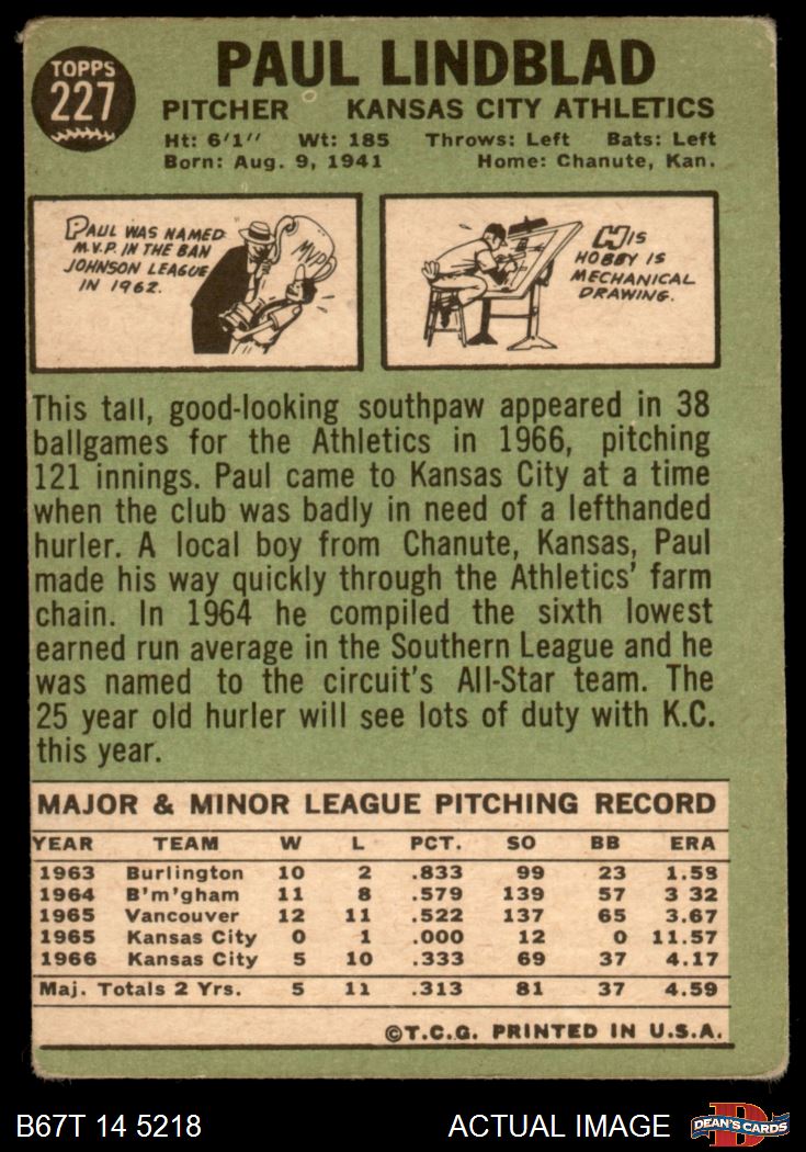 1967 Topps #227 Paul Lindblad 1.5 - FAIR