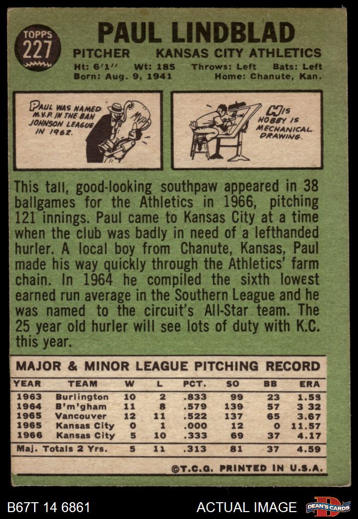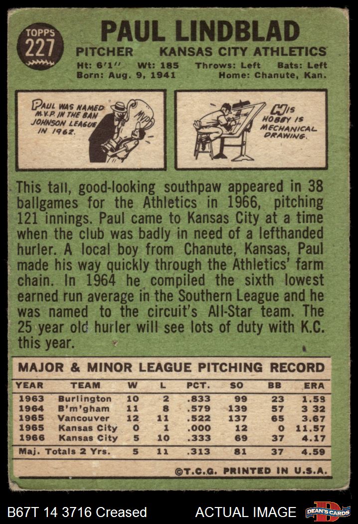 1967 Topps #227 Paul Lindblad 2 - GOOD