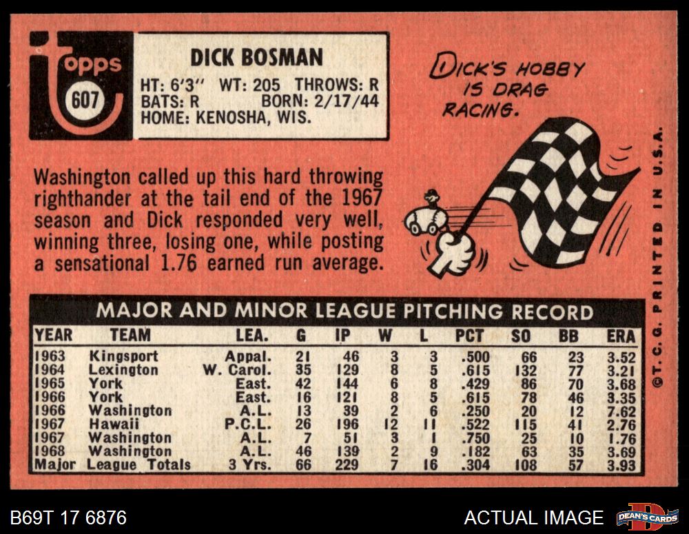 1969 Topps #607 Dick Bosman