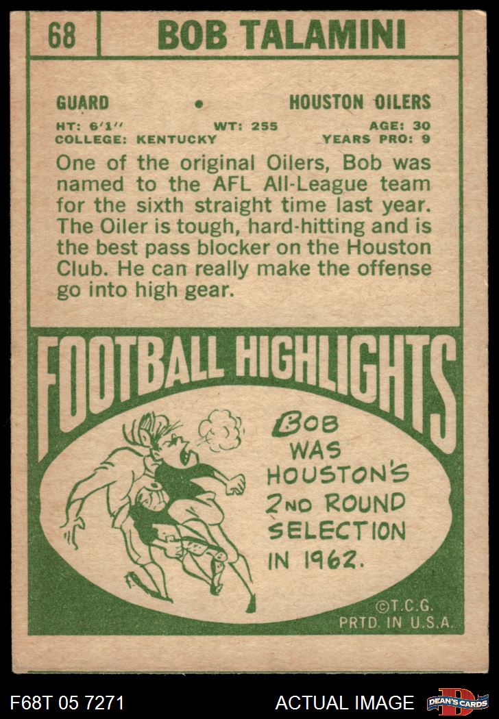 1968 Topps #68 Bob Talamini 3 - VG